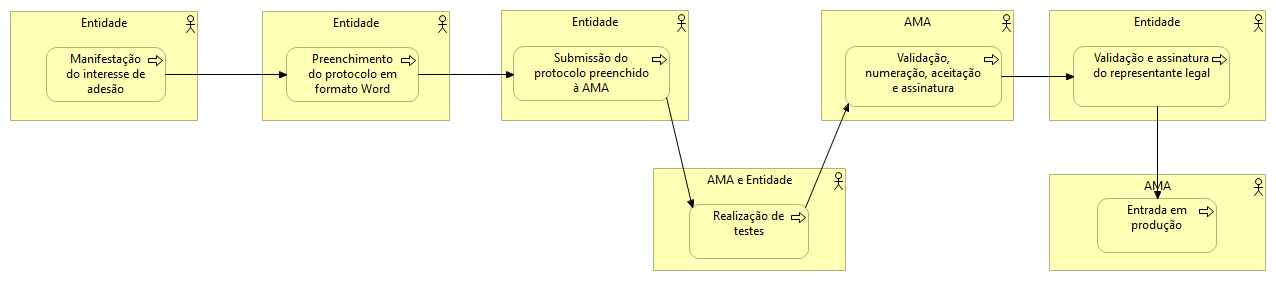 | **4.** Realização de testes                          | ARTE e Entidade Aderente | A realização de testes poderá ser iniciada antes da respetiva assinatura. Para isso, é necessário enviar um email para a equipa [eid@arte.gov.pt](mailto:eid@arta.gov.pt) e seguir as orientações da documentação indicada no protocolo. |
