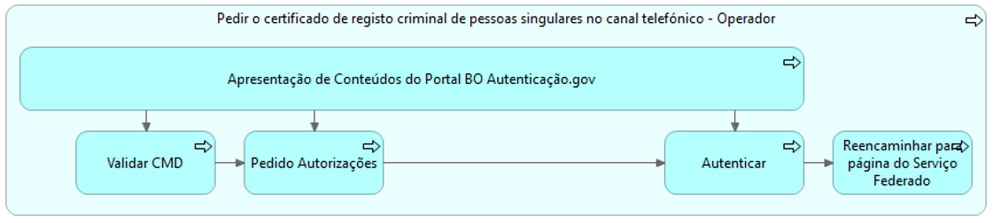 <figure><img src="https://2869735785-files.gitbook.io/~/files/v0/b/gitbook-x-prod.appspot.com/o/spaces%2F0oDmFsd3xf4yMMXZ1ctr%2Fuploads%2F1iPLmJqZDkXqFBiAO0jP%2Fimage.png?alt=media&#x26;token=650b2648-a834-4162-8308-9c382ca19c1d" alt=""><figcaption><p>Vista do Processo Aplicacional do serviço - Pedir o certificado de registo criminal de pessoas singulares no canal telefónico - Cidadão</p></figcaption></figure>